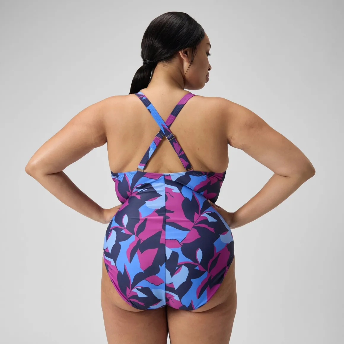Love your vacation look wearing this colourful Shaping Swimsuit, available in extended sizes with a pretty V neckline and thoughtful figure-flattering ruching. Together with our premium shaping fabric, the bright botanical print helps to visually streamline the silhouette. Embossed gold branding upgrades your beach style, while removable bra pads offer support and the adjustable cross-back straps ensure a great fit. Cut from our premium, comfortable body-shaping fabric, which works to smooth and contour the body, it’s ideal for the beach or pool. offering higher chlorine resistance than standard swimwear fabrics, our new shaping fabric fits like new for longer with CREORA® HighClo™. The Nylon yarn in our new shaping fabric is also made from 100% pre-consumer waste, such as waste fabric from factories.